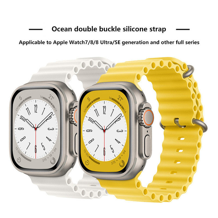 بند اوشن اپل واچ با ظاهری شیک و متفاوت همراه با اپل واچ اولترا معرفی شد. این بند قابل استفاده بر روی سری های مختلف اپل واچ می باشد. جنس این بند از سیلیکون بوده و قفل سگکی دارد. بند ocean با وزن سبکی که دارد به هیچ عنوان دست شما را در طول روز اذیت نمی کند.